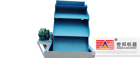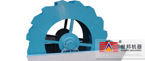 工作時(shi),電(dian)機通過三角帶(dai)、減速機、齒輪(lun)減速后帶(dai)動(dong)葉(xie)(xie)輪(lun)緩慢轉(zhuan)動(dong),砂石有給(gei)料槽進入洗槽中(zhong),在葉(xie)(xie)輪(lun)的(de)帶(dai)動(dong)下翻滾,并(bing)互相研磨(mo),除去覆蓋砂石表面的(de)雜(za)質,同時(shi)破壞(huai)包覆砂粒(li)的(de)水汽層,以利(li)于脫(tuo)水;同時(shi)加(jia)水,形(xing)成(cheng)(cheng)強大水流,及時(shi)將雜(za)質及比重小的(de)異物帶(dai)走(zou),并(bing)從溢出口(kou)洗槽排出,完成(cheng)(cheng)清(qing)洗作用。干凈的(de)砂石由葉(xie)(xie)片帶(dai)走(zou),砂石從旋轉(zhuan)的(de)葉(xie)(xie)輪(lun)倒入出料槽,完成(cheng)(cheng)砂石的(de)清(qing)洗作用.
